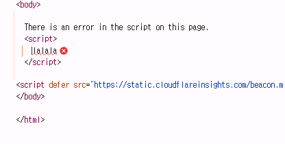 콘솔에 빨간색 에러 메시지가 보일 것임. 예를 드러 lalala라는 알수 없는 명령어가 있어서 에러가 발생했다고 침.